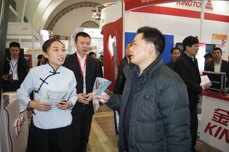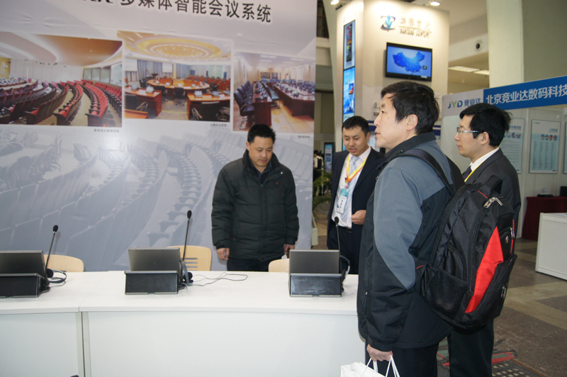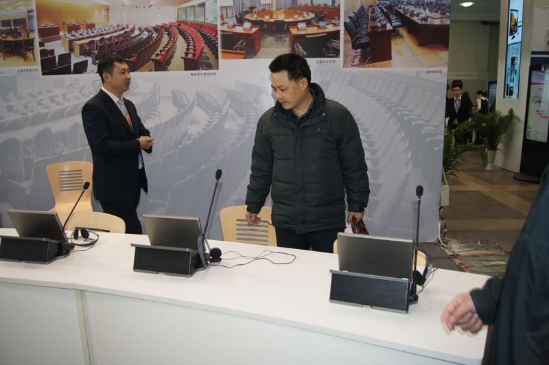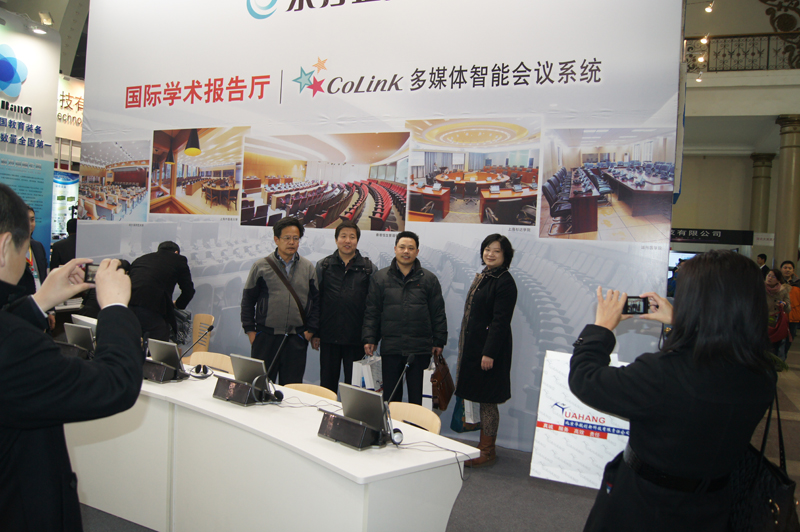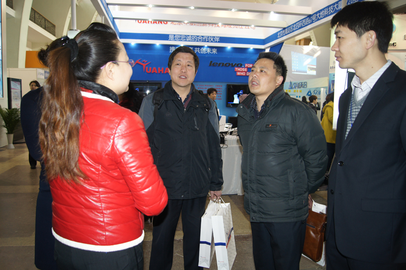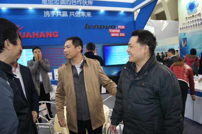 展会上,杨增城副院长和语音实验室人员与参展商探讨交流了语言实验室成套设备和多媒体教学等方面的最新动态与未来发展趋势。在以教育信息化推动实现装备现代化的今天,将先进的设备更好的应用于课堂教学,配合大学英语新课程改革的步伐是我们共同追求的目标。