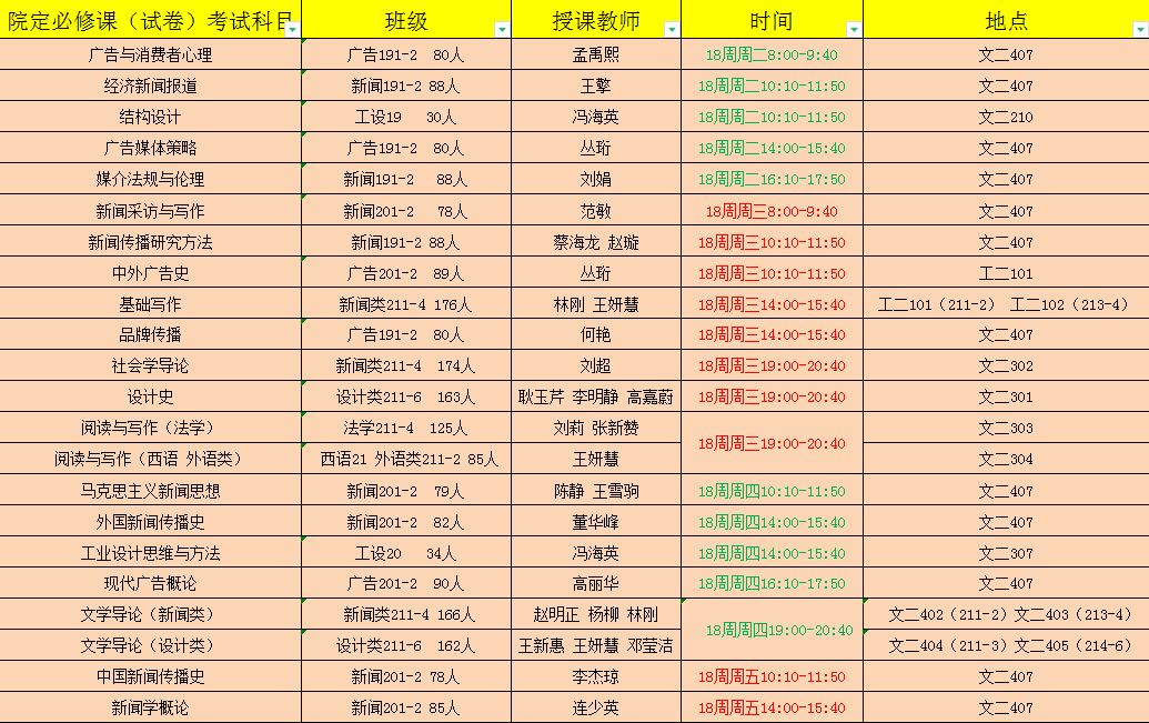 2021秋季学期传媒与设计学院院定必修课(试卷)考试安排