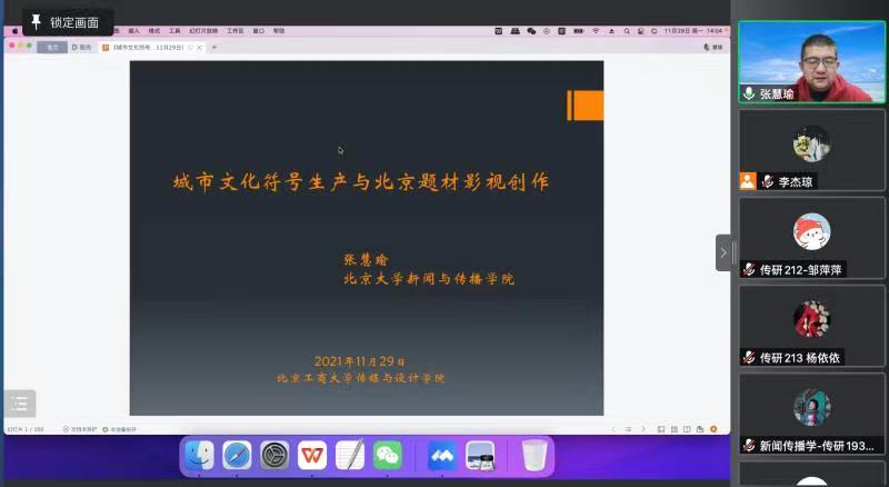 11月29日,北京大学新闻与传播学院研究员、博士生导师、博雅博士后合作导师张慧瑜,应邀走进2021级新闻与传播专硕《世界新闻传播实践史专题》的课堂,开展了题为“城市文化符号生产与北京题材影视创作”的学术讲座。讲座由传媒与设计学院副院长李杰琼主持。学院专任教师、在校研究生和兄弟院校师生共计80余人以线上线下相结合的方式参加讲座。