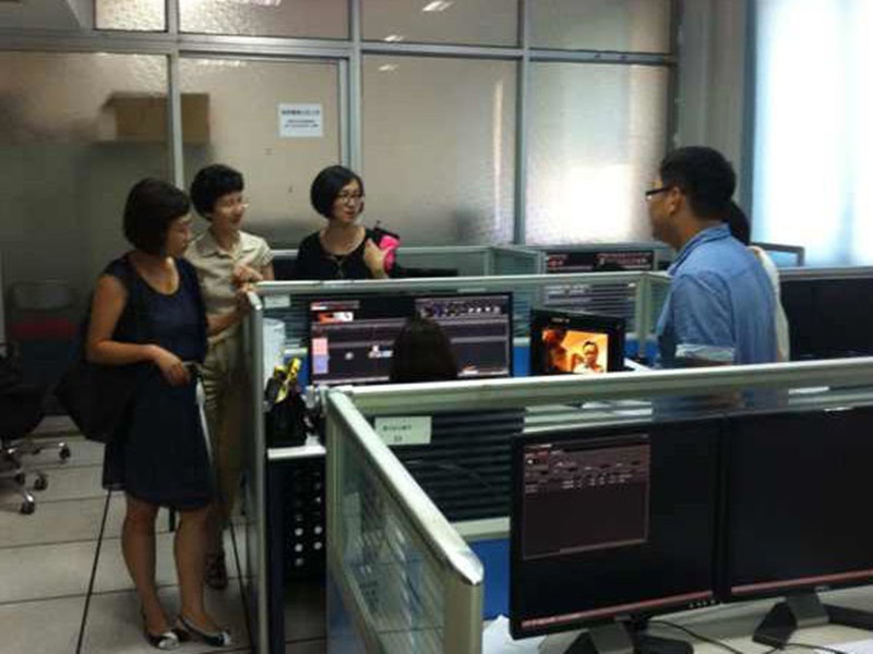调研期间,吴玉玲主任一行还参观了北京电视台台财经节目中心的编辑制作机房。并深入《财富故事》和《首都经济报道》栏目,和制片人、主编和毕业于我校新闻系的记者编辑进行了进一步的互动交流。