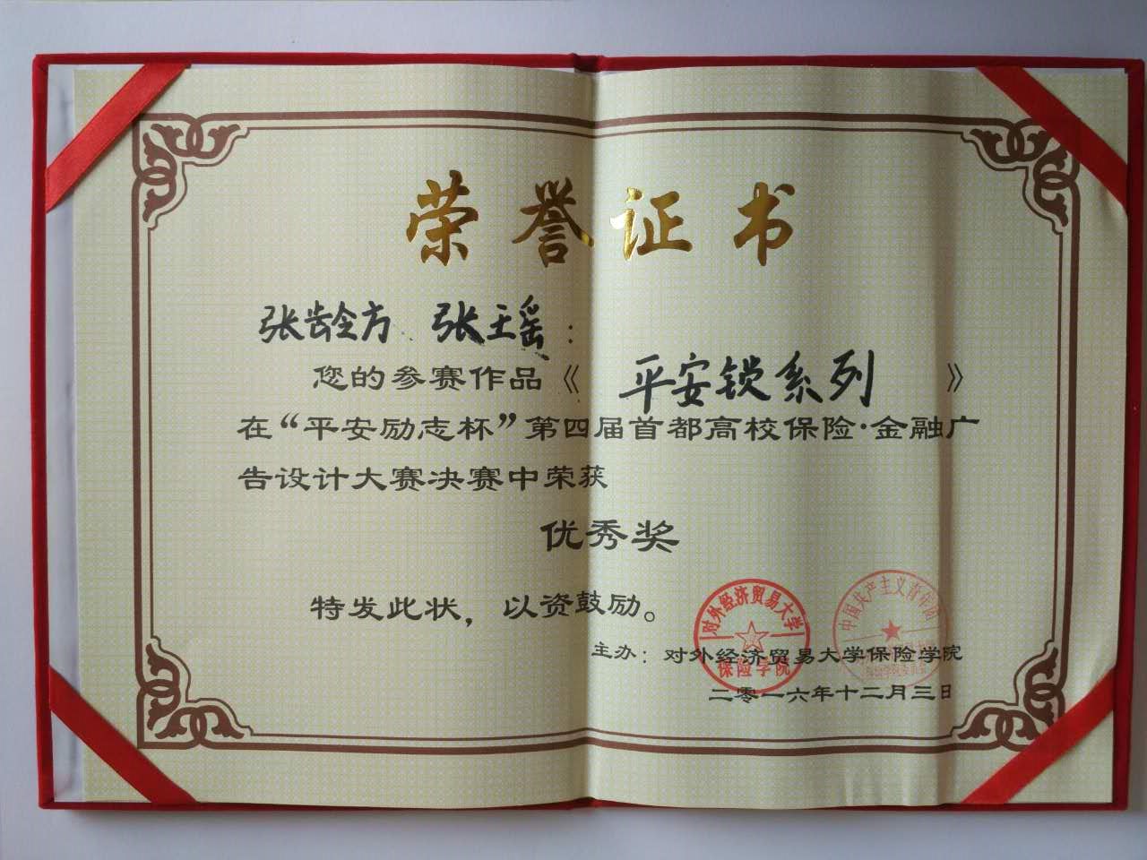 艺传学子荣获“平安励志杯”第四届首都高校保险.金融广告设计大赛优秀奖