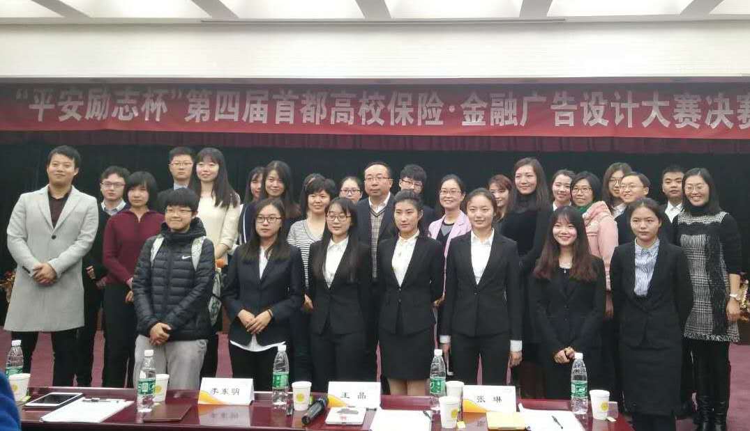 12月3日下午,“平安励志杯”第四届首都高校保险·金融广告设计大赛总决赛在对外经济贸易大学举办。我院学生作品入围本次大赛决赛,出席决赛的评委有中国保险报业股份有限公司品牌部负责人李东明、中国保险学会创新部主任助理王晶、首都经济贸易大学广告系教授李佳蔚、平安产险北京分公司品牌部郭晓雨、永诚保险公司车险运营部主管张琳。我院团总支书记徐亮带领学习实践部长郭菊一行4人作为特邀嘉宾出席本次大赛决赛。