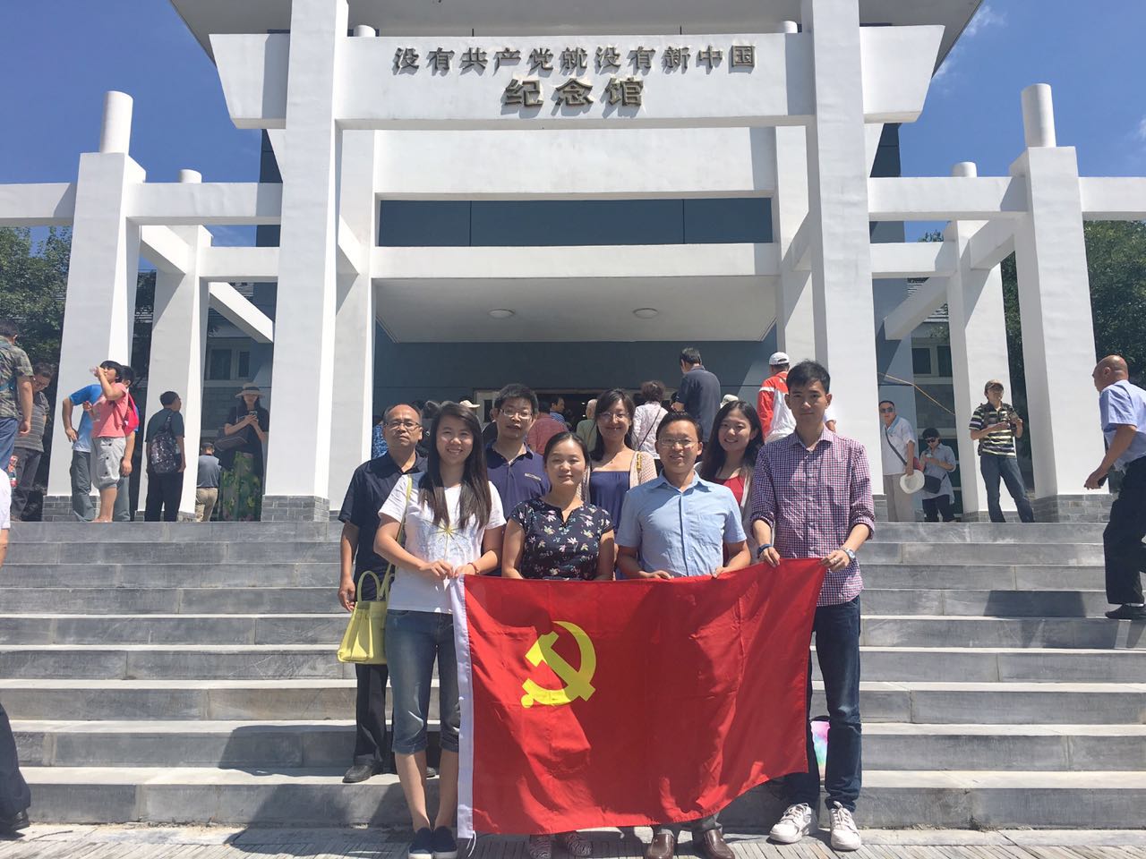 2016年6月29日星期三,艺术与传媒学院学生工作党支部全部成员,包括学院党委副书记刘晶,党支部书记徐亮,组织委员姚悦,宣传委员李昀澄,支部成员周汝永,程远,王一筱和学院党务秘书马飞一行8人,参观了位于北京市房山区霞云岭乡的“没有共产党就没有新中国”纪念馆。纪念馆依山而建,在面对纪念馆的峭壁上,树立着一面约有200平方米的党旗,党支部全体成员在这面巨大的党旗下重温了入党誓词。