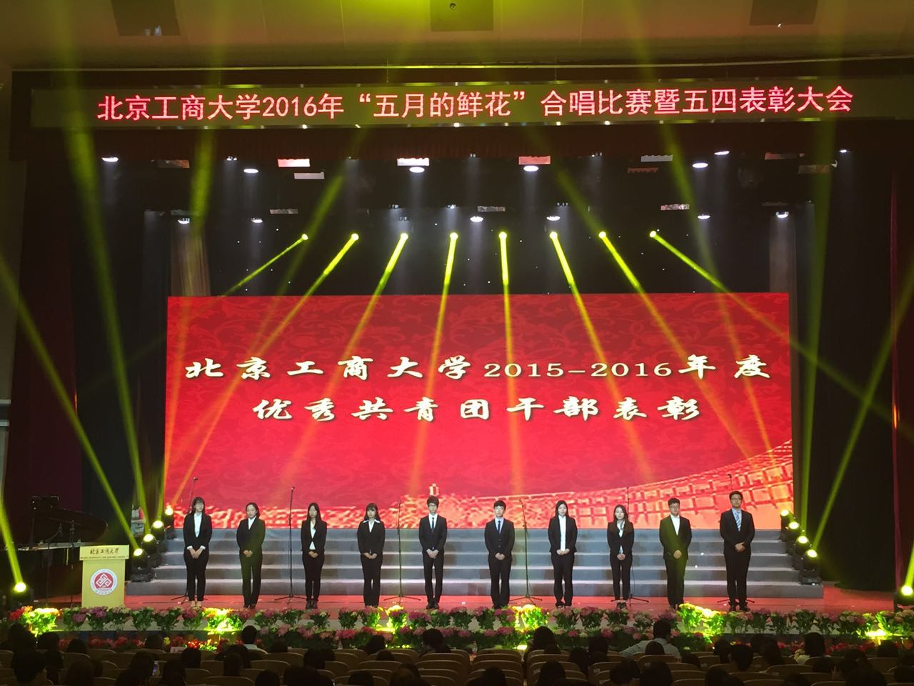为纪念五四运动97周年,弘扬爱国、民主、科学、进步的五四精神,激励全校青年奋发进取。5月4日下午,北京工商大学2016年“五月的鲜花”合唱比赛暨五四表彰大会在良乡校区A报告厅举行。孙宝国等校领导、学校德育工作委员会成员,各学院党委(党总支)副书记、团总支书记,优秀团支部、团干部、团员代表以及各学院合唱团、团员青年参加活动。我院出席此次活动的领导有院长罗子明、党委副书记刘晶、团总支书记徐亮以及15级辅导员李昀澄、王一筱。