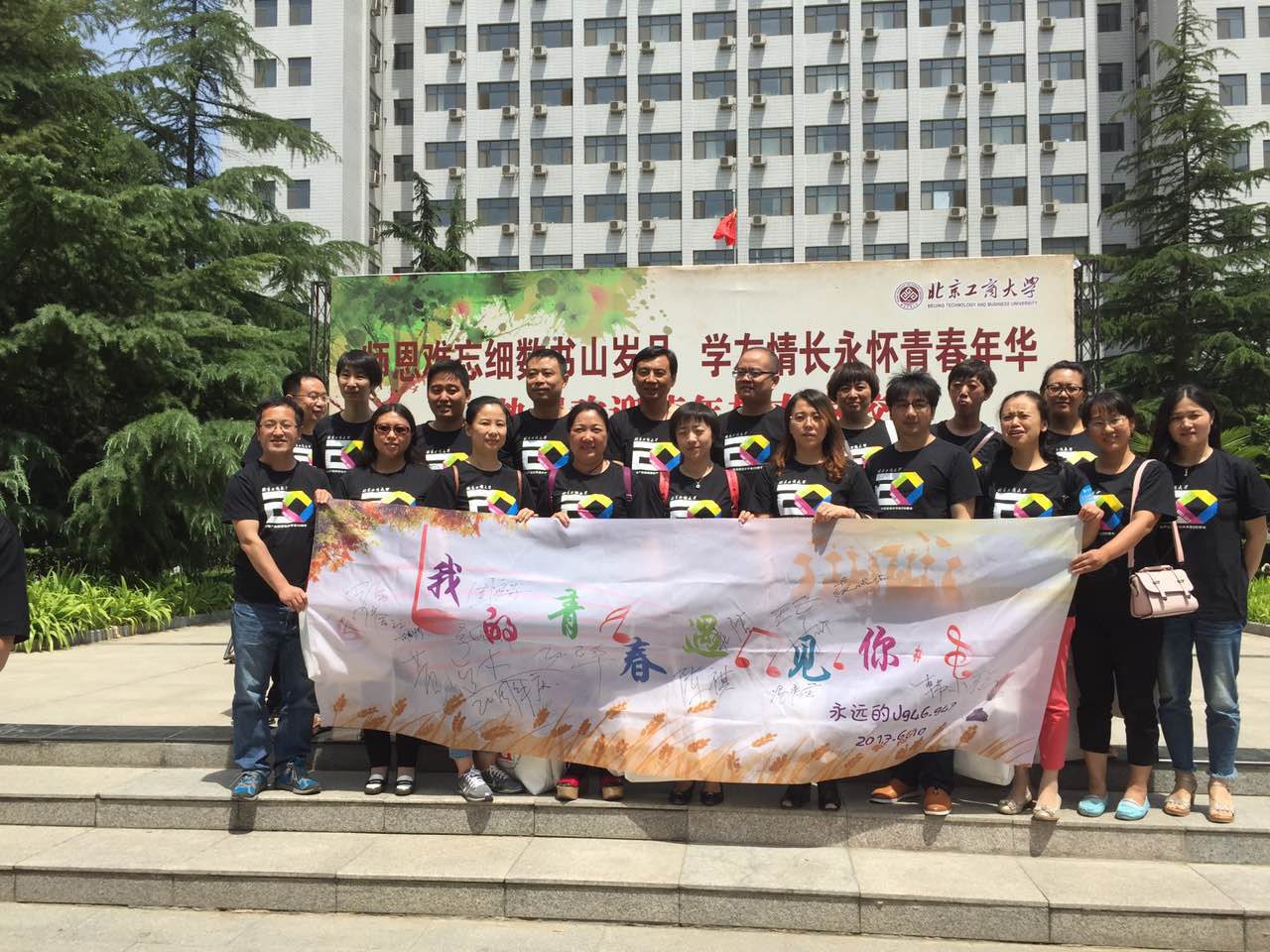 为迎接校友返校,学院经过前期准备,提前布置好场地。上午8点,校友们陆续赶到学校,学院邀请实验室教师白京利用影棚为提前到的校友拍摄艺术照,拍照间隙,校友们交谈盛欢,其乐融融,不亦乐乎。94级产品设计造型专业校友为了本次聚会,部分校友从四川、山东、湖南、海南等地提前赶到北京,精心设计了自己独具特色的毕业服装和logo标识。