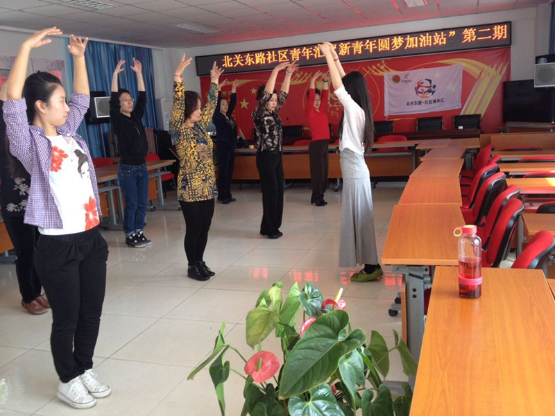 根据北京团市委和校团委的统一要求和部署,2014年3月份以来艺传学院青志协进一步和北关东路青年汇开展了一系列对接和共建活动,本学期开展了舞蹈、盘子画、摄影、剪纸等一系列的教学,让青年汇里的社会青年和社区中的妇女生活更加丰富。