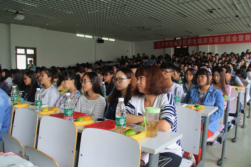 9月24日下午,在同学们的掌声中,艺传学院学生组织茶话会暨新老学生交流会于文二楼304教室拉开了序幕。学院党总支副书记杨艳萍、学院团总支书记徐亮出席会议,主席团全体成员、各部部长、副部长以及各部门干事共计200余人参会,会议由学院学生会副主席陈思宇主持。