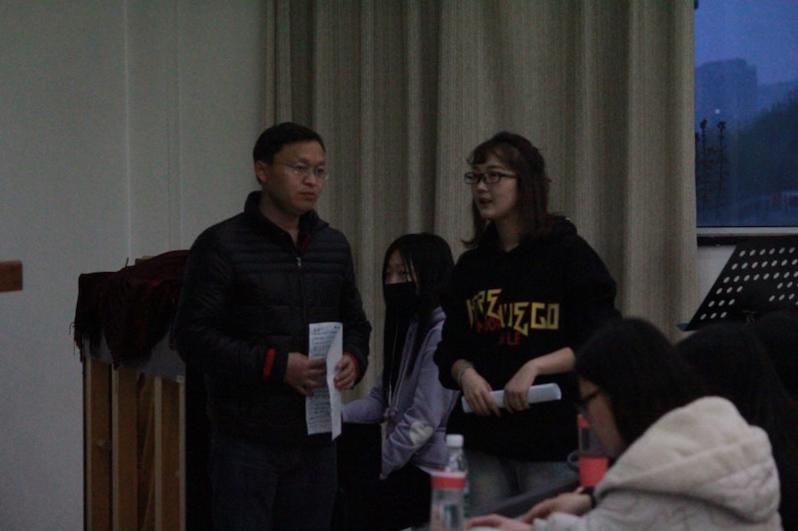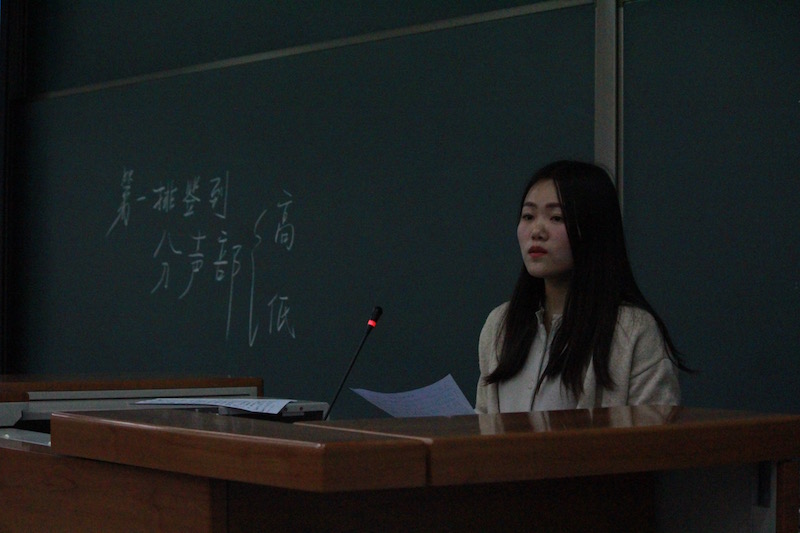 学院合唱团每周四天在艺术楼A座301展开合唱训练,学院团总支书记徐亮多次来到现场关心和慰问合唱团学生,对参与为合唱台前幕后辛苦付出的学生干部和积极参加合唱的同学们的辛苦训练提出表扬,鼓励大家继续坚持,希望大家克服困难,听从指挥,期待大家在比赛中取得理想的成绩。随着时间的推移,合唱训练也逐渐进入高潮,高低声部分开训练,各声部的同学逐渐进入状态,朗诵、领唱、舞伴、钢伴以及指挥都在合唱中互相配合不断的进行练习。