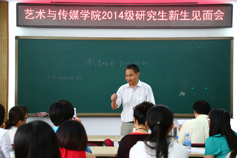 9月11日下午,“艺术与传媒学院2014级研究生新生见面会”在阜成路校区教一楼举行。艺传学院院长罗子明、党委书记秦巍、副院长林刚、辅导员邱斐、研究生导师已及我院2014级研究生全体新生参加了此次迎新大会。会议由副院长林刚主持。