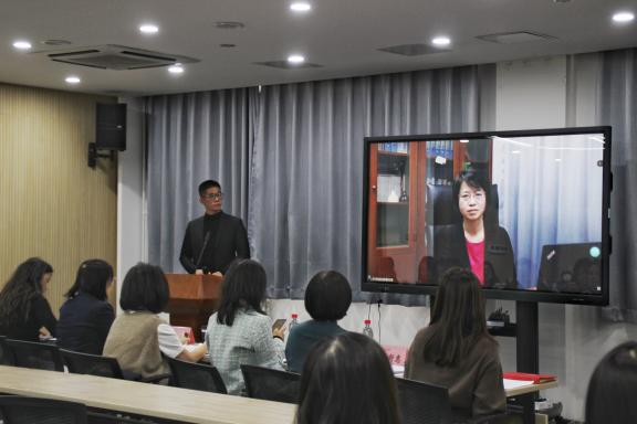 传媒与设计学院研究生导师李杰琼、朱慧、王新惠,专任教师刘娟、孟禹熙、李妍担任本次比赛复赛环节评委。会议由学院研会主席李浩主持。学院2021级全体研究生出席活动。