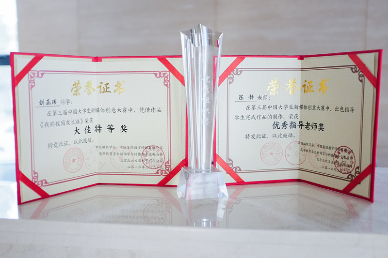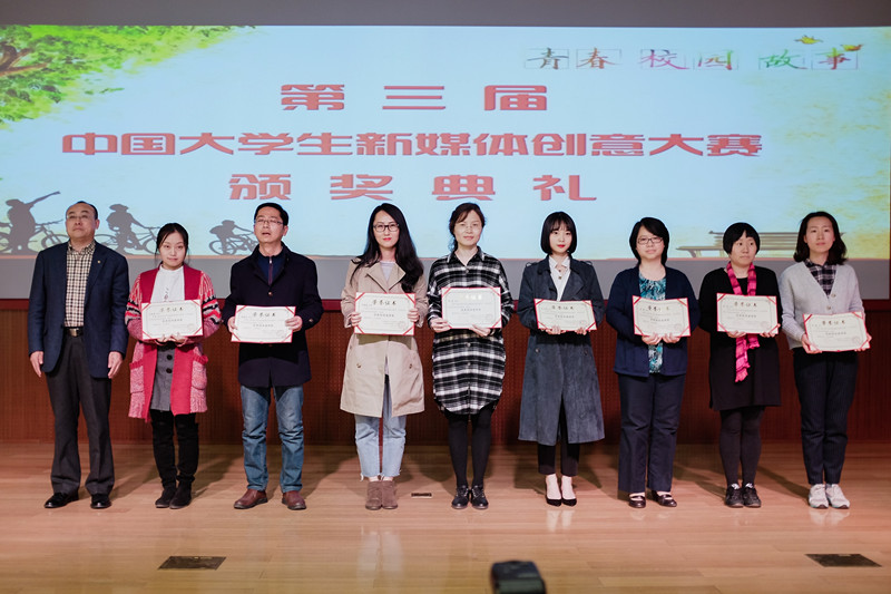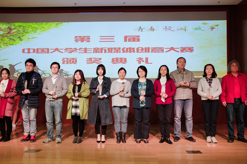3月29日,第三届中国大学生新媒体创意大赛颁奖盛典在北京师范大学隆重举行。我校艺术与传媒学院新闻系13级学生刘函玮荣获大佳特等奖,新闻系教师陈静荣获优秀指导教师奖,我校获优秀组织奖。我校代表队由艺术与传媒学院副院长王擎教授带队参加颁奖典礼。
