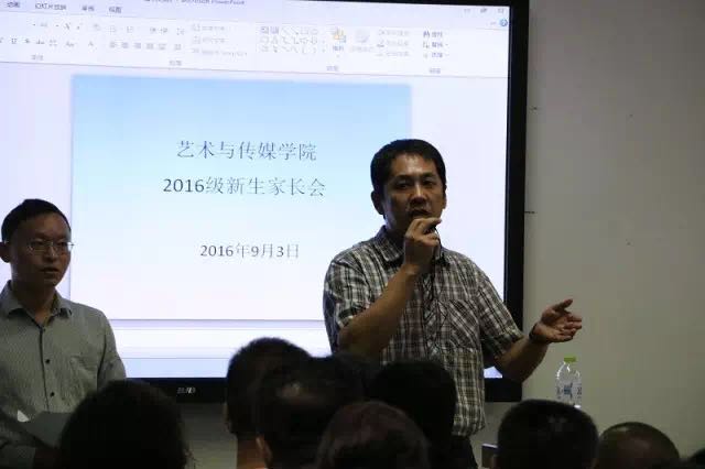下午,为方便新生家长们了解艺传学院,欣赏学院学术艺术周作品,学院将2016级新生家长设在艺B楼召开,教室中座无虚席。学院党委书记林刚副教授、院长罗子明教授、副院长郑子云副教授、党委副书记刘晶老师以、各系正副主任和16级各班班主任出席,会议由徐亮主持。