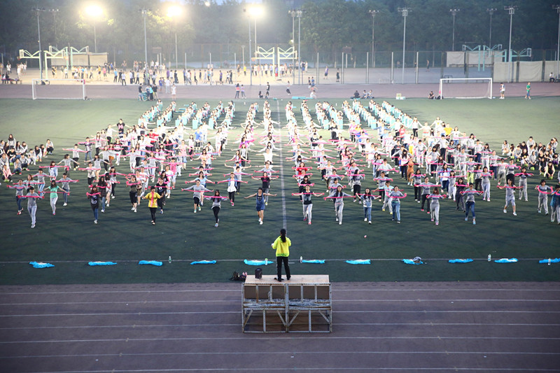 伴着悠扬律动的音乐响起,热力操的排练又一次开始。整齐有序的队伍,热力飞扬的节奏,夏日的夜晚多了一丝青春的气息。经过了五次全体合练后,现在场上参加热力操表演的同学们动作整齐划一,队形变换完成得行云流水,脸上洋溢着蓬勃的活力与朝气。