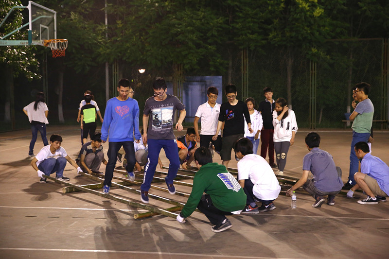 在篮球场上来自食品材机艺传三个学院的100名同学组成的竹竿舞队伍将作为心理活动展示在运动会上表演,其中有40名艺传学院的同学。队伍分成五个方阵,主要分为敲杆和跳舞两项。欢快悦耳的音乐,动感的律动,飞舞的脚步,将民族风和青春活力完美结合起来。