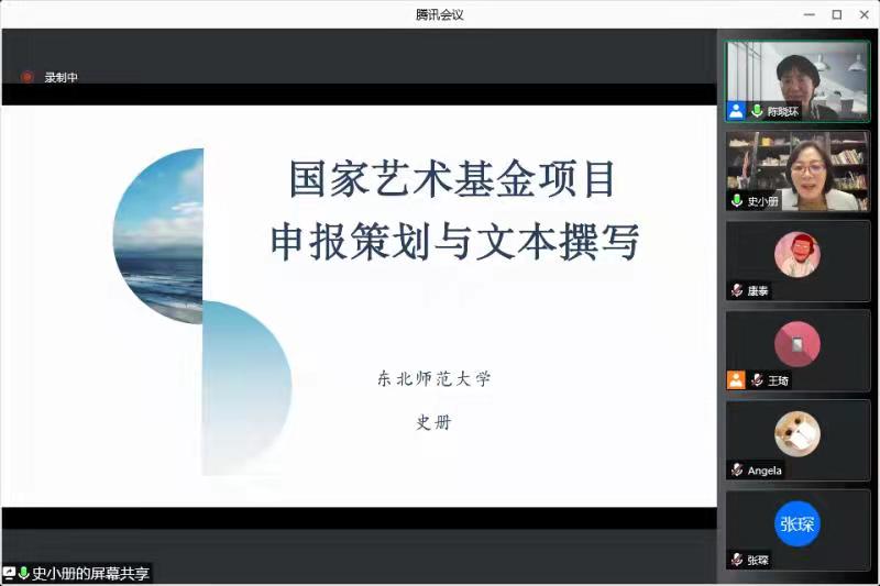 为助力两科基金申报和提高师生科研水平,学院邀请专家举办关于国家社科基金申报辅导系列学术讲座,第一讲于11月19日在腾讯会议线上召开,讲座题目为《国家艺术基金项目——申报策划与文本撰写》,东北师范大学传媒科学学院(新闻学院)教授、博士生导师、副院长、国家艺术基金评审人史册老师进行主讲,陈晓环教授主持,学院师生共同参加。