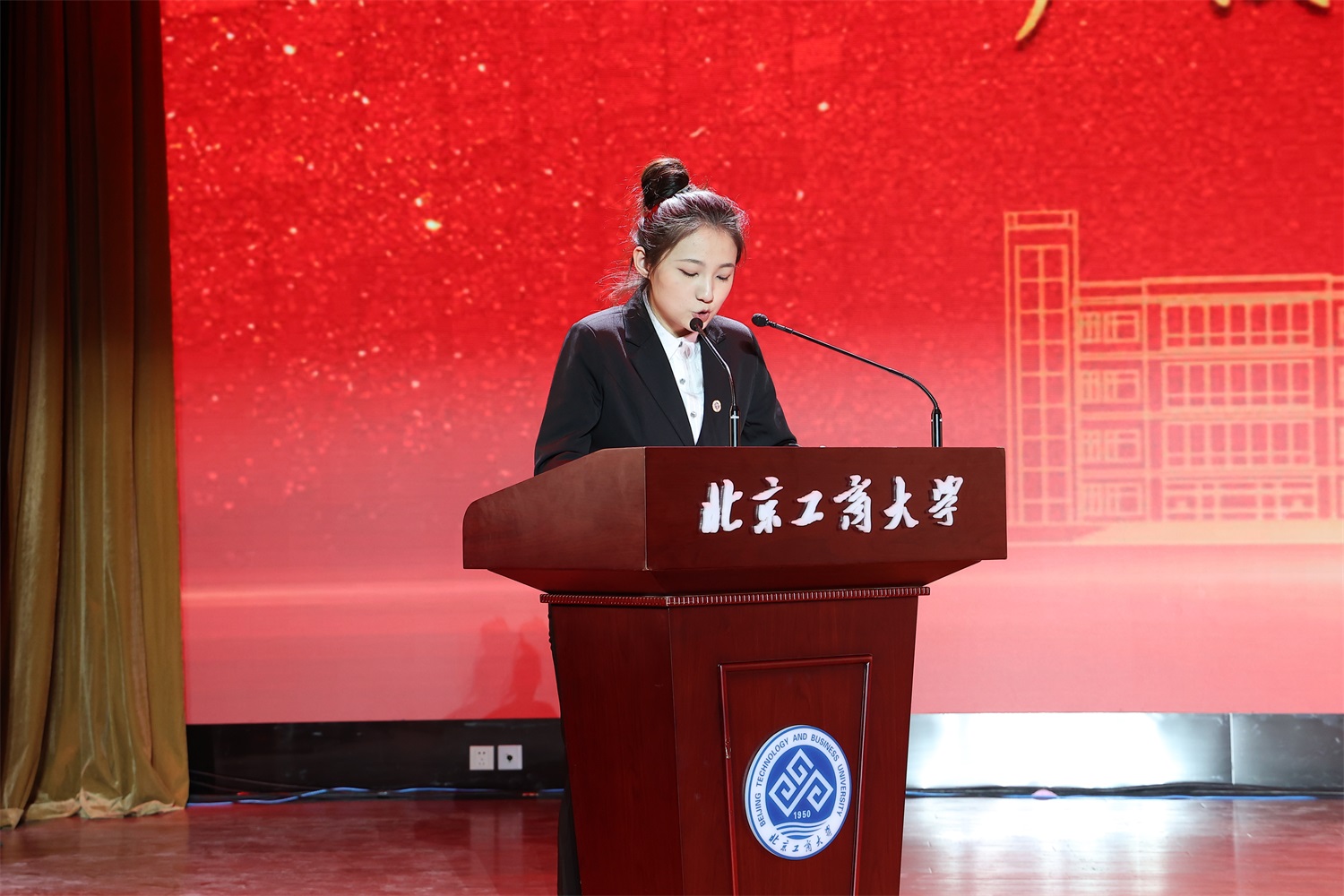 为深入学习宣传贯彻党的十九届六中全会精神,纪念“一二·九”运动86周年,同时表彰先进集体与个人,弘扬中国优秀传统文化,传承伟大建党精神。2021年12月9日晚7:00,传媒与设计学院在良乡校区A报告厅隆重举办了2021年度学生表彰大会暨第六届“传颂千古经典 回望百年雄途”经典诗文诵吟大赛。北京工商大学学生处处长吕良,传媒与设计学院院长王擎,学院党委副书记杨帅,副院长刘红菊、李杰琼、陈晓环,各系(教研室)主任,学生处党浩老师,校团委赵晓萌老师,研究生院杨天骄老师,学院办公室何淼老师,晨曦校友奖学金捐赠人刘陈晨,2021级班主任、学院辅导员、获奖学生代表以及全体2021级学生、部分高年级学生参会。