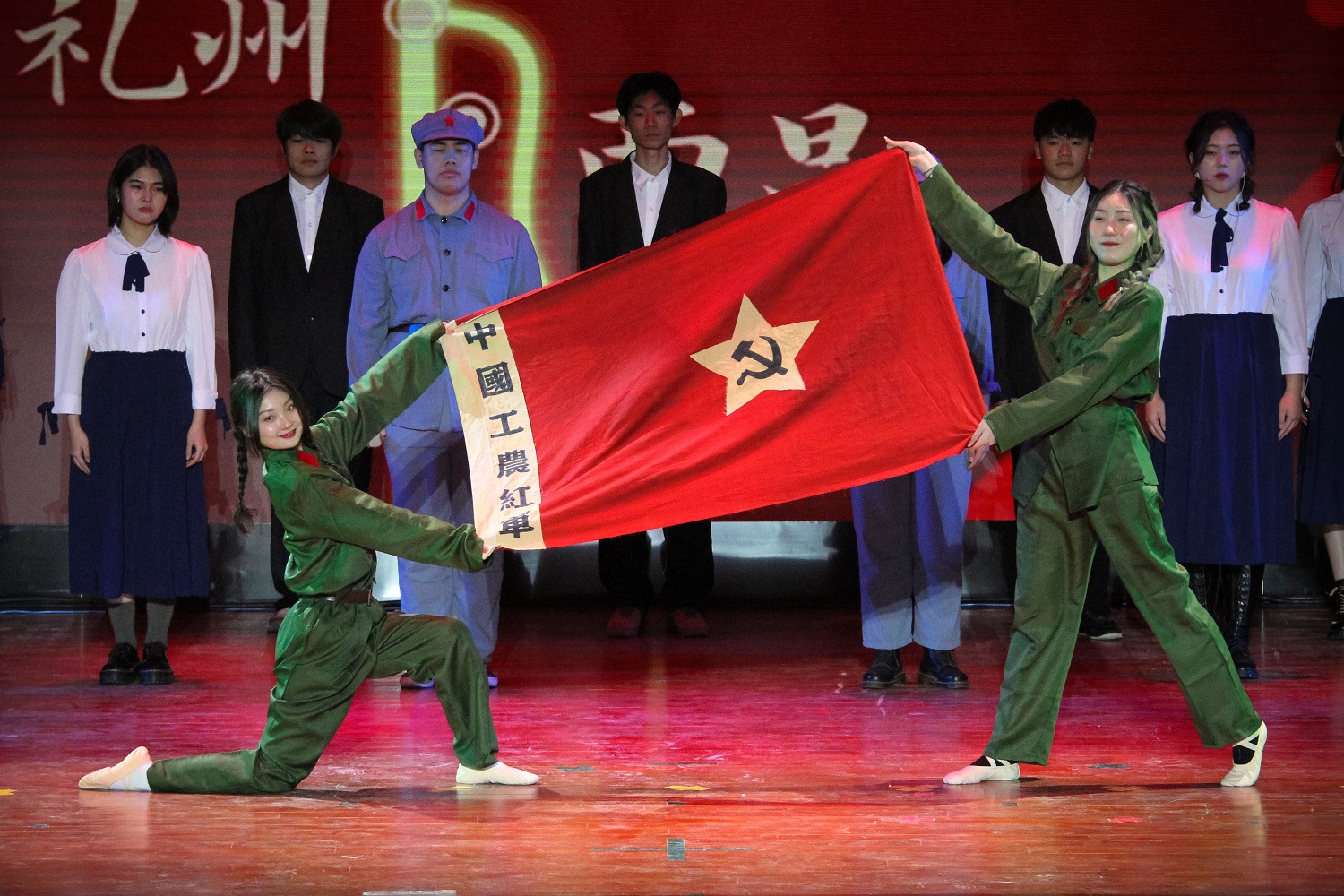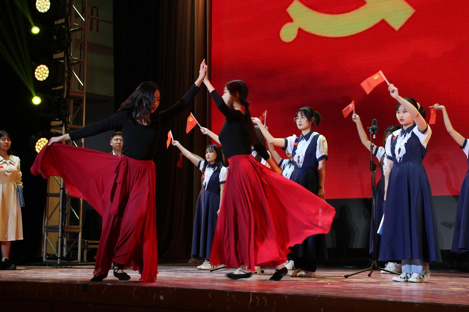 接下来进行的是经典诗文诵吟大赛之建党百年赛道。传媒212班、设计214班、传媒211班、设计212班、传媒214班依次表演了《百年红船》、《南昌起义——我心中的“八一”军旗》、《七律·长征》和《仰望长征》、《祖国啊!我为你自豪》、《紫荆白莲开,筑梦新时代》一系列节目,慷慨激昂,振奋人心。文艺部成员的节目《盛世中国》,话剧社和合唱团合作的节目《三个逝者的祝福》《在灿烂的阳光下》同样让人深受震撼。