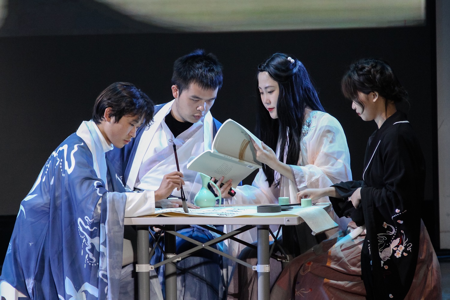 大赛伊始,全体起立,奏唱国歌,第六届“传颂千古经典 回望百年雄途”经典诗文诵吟大赛之经典国文赛道正式拉开序幕。中文教研室王妍慧主任、刘莉、杨柳、赵明正、邓莹洁等5位老师担任评委,几位老师在前期的节目审核过程中给予了充分的指导。设计211班、设计215班、设计213班、设计216班、传媒213班依次吟诵了优秀国风节目《逍遥游》《春江花月夜》《短歌行》《蜀道难》《兰亭集序》。声情并茂的朗诵,不仅展现了各班的特色与风采,也传递了历史之音,情感热烈、振奋人心。