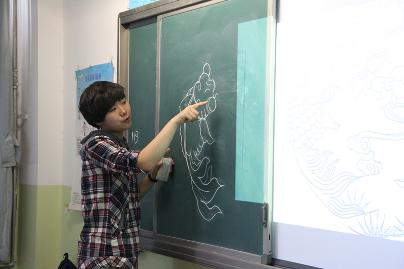 志愿者部的成员带着准备好的中国风图片,走进了三年级的4个班进行创意美术教学。本次教学主要以教孩子们画大体轮廓,找物像位置为主。课堂上,孩子们目不转睛的盯着站在讲台上的老师教学,认真聆听着老师的绘画思路,一步一步按照老师说的小心翼翼的在盘子上仔细的模仿着屏幕上的金鱼,尽管一部分孩子觉得本次小金鱼有些难度,但是他们还是尽自己最大的努力去完成这幅作品。由于时间的缘故,志愿者们将教学分开进行,到本节课结束时,孩子们都纷纷向彼此展示自己的作品,并期待下周三的来临。