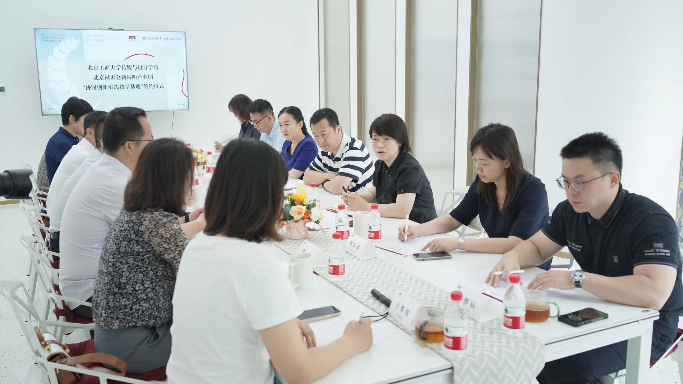 为主动服务和融入首都新发展格局,助力北京全国文化中心建设,8月3日上午,北京工商大学党委常委、副校长刘敏华带队前往北京禄米仓新视听产业园调研交流,并参加传媒与设计学院和北京禄米仓新视听产业园“协同创新实践教学基地”签约仪式。