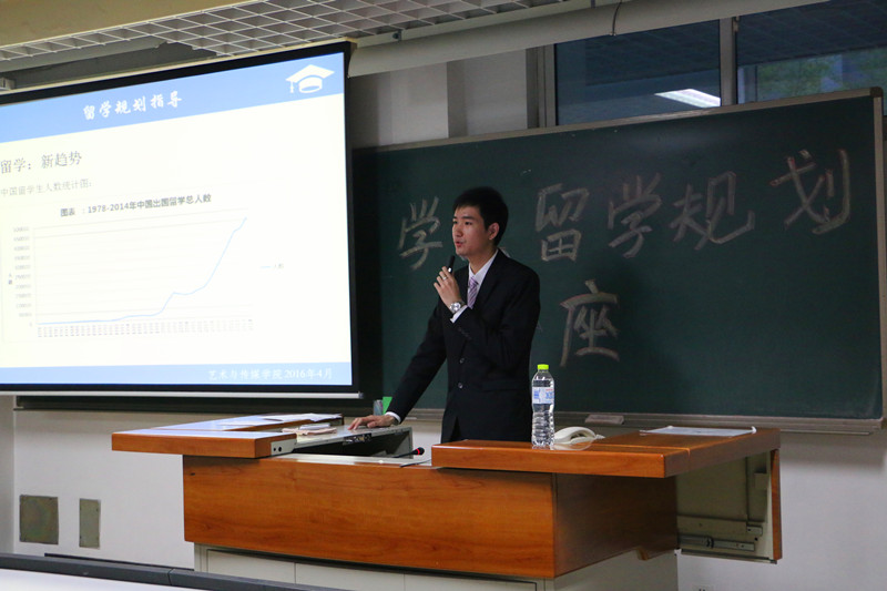 李昀澄和同学们分享了自己在国外的学习生活经历,精彩的视频引发了同学们阵阵掌声。他分享了自己对出国留学的看法,用严肃与诙谐结合的语言告诉同学们大学学习本身的重要性,以及在申请出国留学中各项能力的重要性。介绍了备战考试、出国留学过程中不同时间段应该做什么、要提前准备什么材料、怎么做才能够有条不紊的申请出国留学,选出更适合自己的道路。李老师的讲座幽默风趣,在座的不少学生都表示受益匪浅、对自己的大学生活有了深刻的认识与反思。