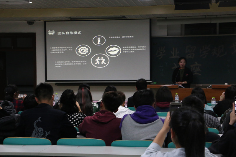 4月12日晚,艺传学院“留学规划指导”讲座于良乡校区举行。讲座由艺传学院的辅导员李昀澄、产品设计11级校友李若楠主讲。学院党委书记林刚、产品设计系梁珣教授、团总支书记徐亮、15级辅导员王一筱等出席讲座。