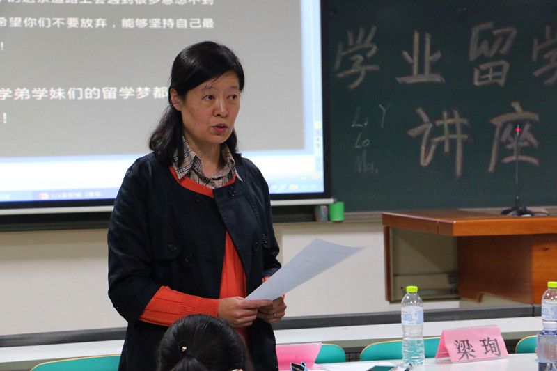 最后,本次讲座的特邀嘉宾梁珣教授向同学们介绍了她自己女儿的出国留学经历,告诉同学们都应该有个积极应对的心态,早做准备。林刚书记为计划要出国的学生鼓舞士气,告诉学院合作院校的出国留学项目,鼓励大家积极申报。互动环节,大家踊跃提问,提出自己关心的问题,现场老师和学姐耐心地做出回答并提供建设性意见和建议,讲座在同学们的热烈掌声中落下帷幕。