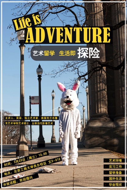 3月23日,独立艺术家、留学艺术教育研究者吴笛应我院邀请,在我校良乡校区文2-212主讲“艺术留学——生活即探险”主题公开课。
