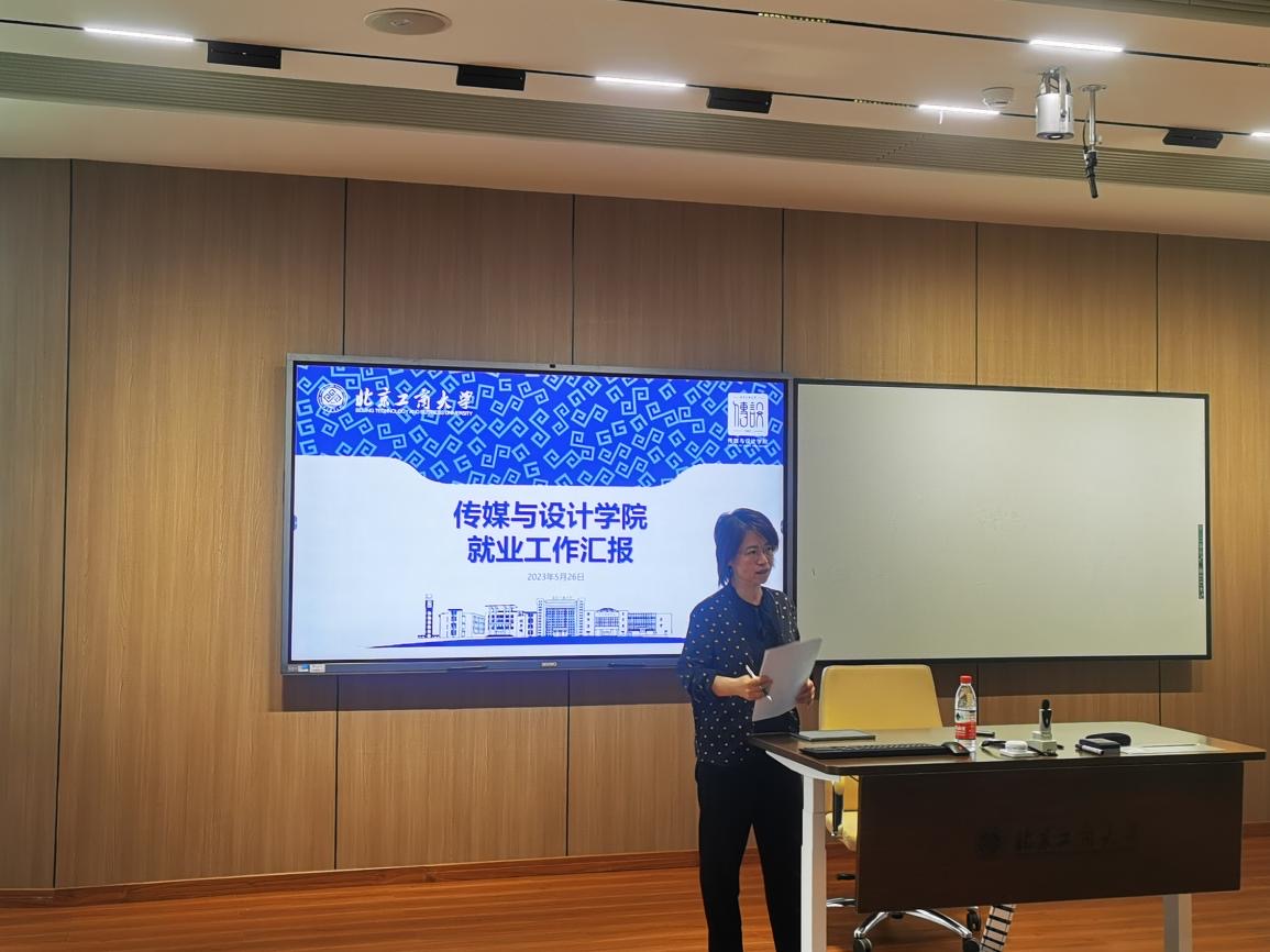 招生就业处处长杨林传达了全国高校毕业生等青年就业创业工作电视电话视频会及北京市2023届毕业生就业工作会推进会会议精神,他对比了学校现阶段各项就业数据,对传媒与设计学院下一步就业重点工作作出指导。