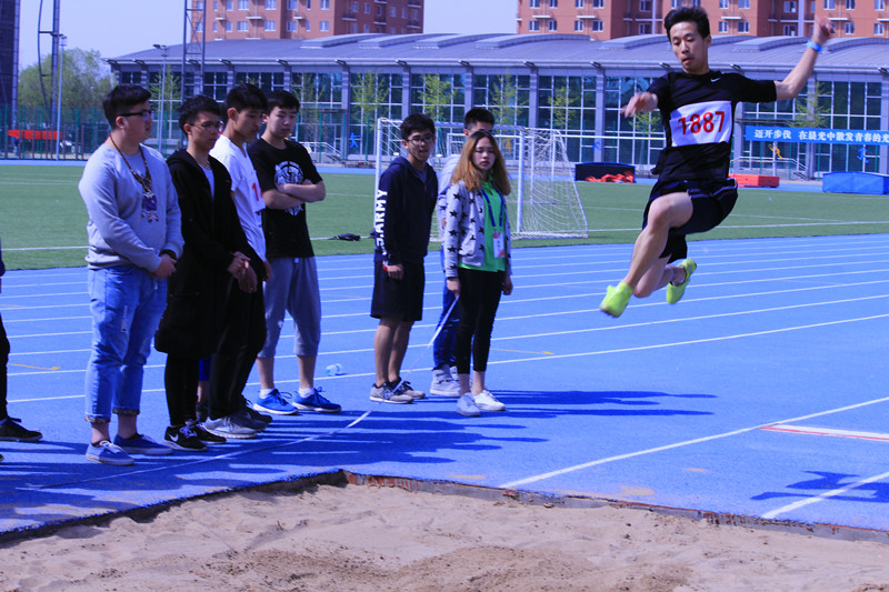 在操场另一端的田赛现场虽然远离看台,但运动员们的表现同样精彩。广告15级的徐博雅奋力一跃,在空中划出一个完美的流线,跳入沙坑,以5.92米的成绩取得了男子跳远的第一名。他赛后表示,虽然得了第一,但是成绩不是非常满意,如果有机会参加校运动会,一定要发挥出更好的水平。
