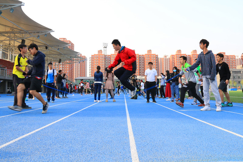 本次运动会共安排了拔河、毛毛虫和六人七足、跳长绳等集体趣味项目,参与人数众多,比赛过程激烈,观众们纷纷为自己的专业呐喊助威,把整场运动会掀起一个又一个高潮。