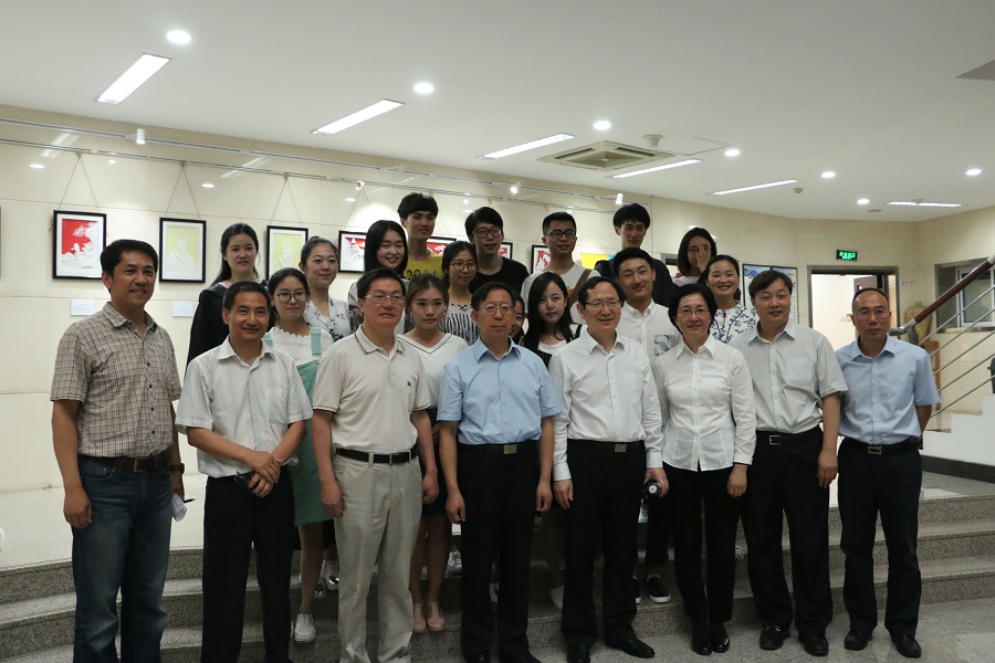 6月15日—22日,校领导谭向勇、孙宝国、张德玉、谢志华、李朝鲜、张耘、郑文红、方德英、邱晓平等莅临学院观展,并参观了学院陶瓷工艺与材料创新工作室、丝网印刷工作室等。校领导观看了16届毕业生制作的视觉特效短片作品,体验了丝网印刷工艺和木板年画印刷等工艺,对师生平面作品、油画、素描、剪纸、书法、国画以及手绘等作品给予高度评价,对学院共享型创新工作室人才培养模式给予肯定,并希望学院进一步围绕专业特色完善实践教学体系,探索符合国家和首都经济社会发展需求的发展路径。