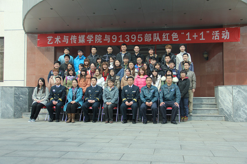 2013年3月23日,在艺术与传媒学院党总支秦巍书记、杨艳萍副书记和辅导员姚悦老师的带领下,学生第九党支部党员以及入党积极分子40余人来到海军91395部队开展“红色1+1”基层党建活动,感受军人生活。