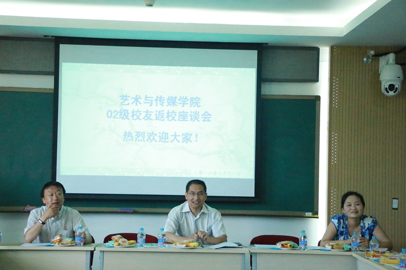 6月11日,艺术与传媒学院首届校友值年返校日活动成功举办。在学院的盛邀之下,2002级的部分校友接踵而来出席“忆往昔,共话工商情”校友座谈会。院长罗子明、党委书记林刚、新闻系副主任范敏、设计系副主任张明、广告系副主任丛珩与会,会议由党委副书记刘晶主持。